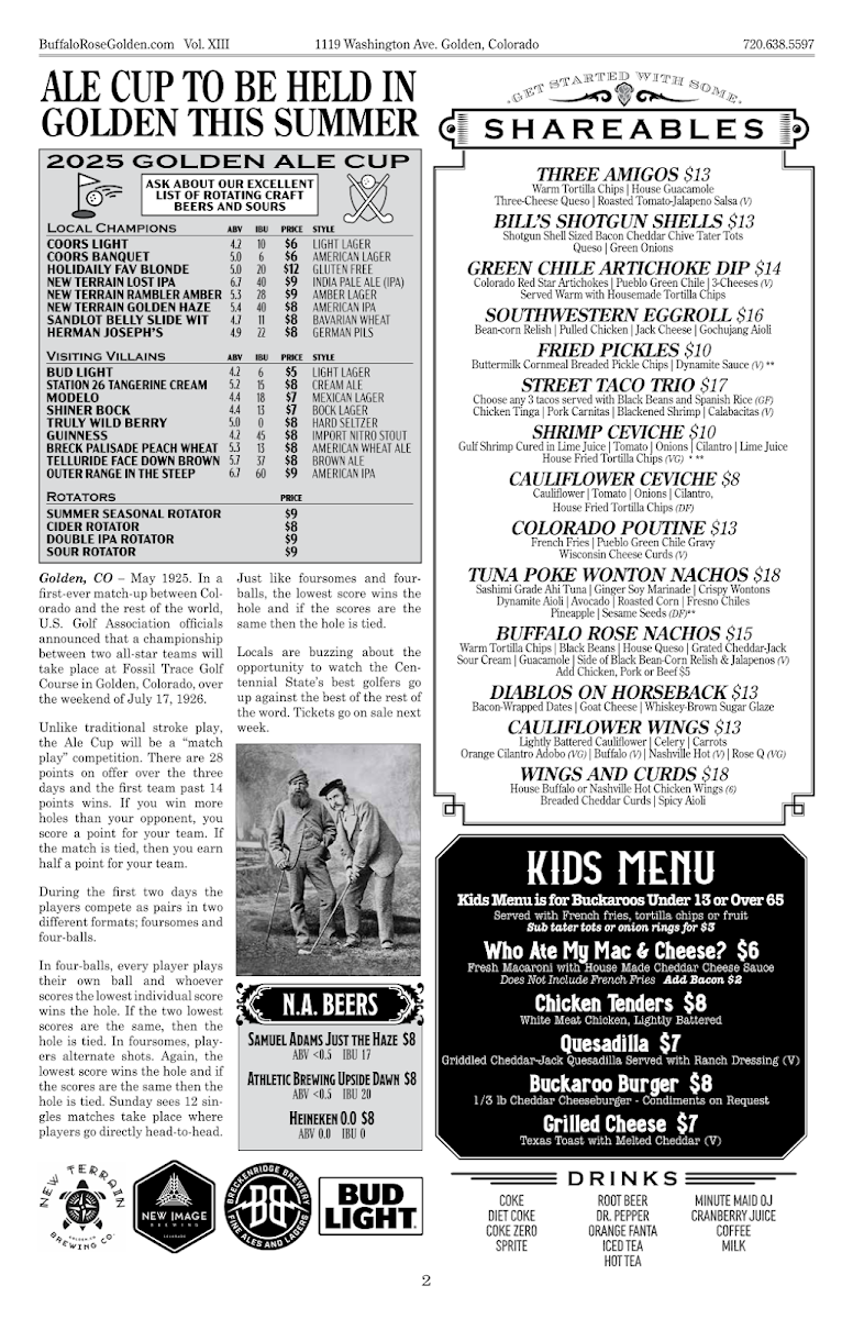 Come for the food, stay for the experience! Don’t miss out on your chance to explore what Buffalo Rose has to offer—your taste buds will thank you!