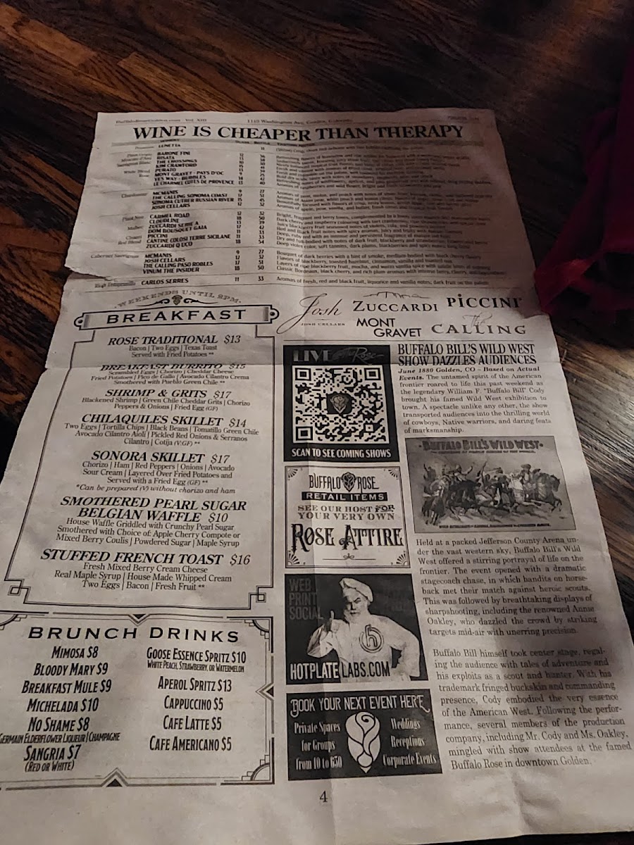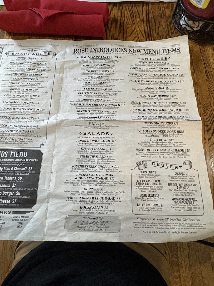 Welcome to Buffalo Rose, a unique culinary gem nestled in the heart of Golden, Colorado. Located at 1119 Washington Ave, this vibrant establishment is not just a restaurant but a historian's dream, situated in a building steeped in local lore. As soon as you step inside, you’re enveloped in an atmosphere that exudes warmth and character, perfect for both casual diners and those seeking a memorable dining experience.